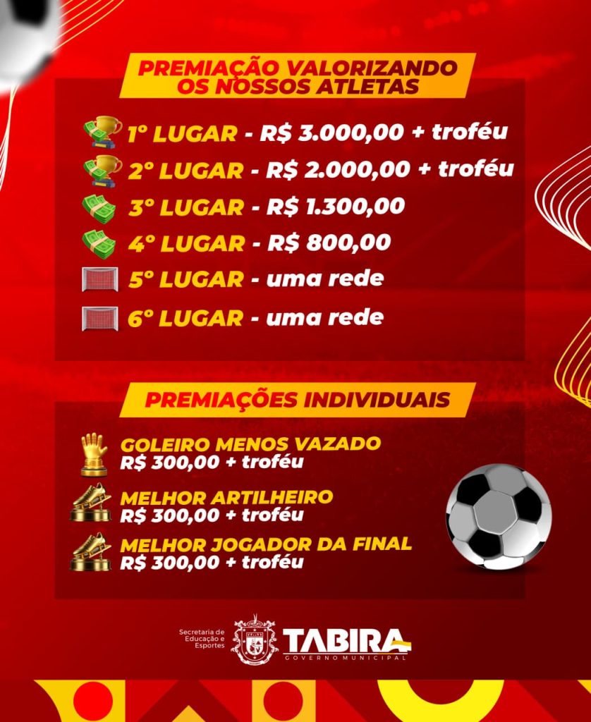 Além da emoção dentro de campo, a Copa dos Bairros também reforça o compromisso da gestão municipal com o esporte amador. A competição contará com premiação em dinheiro, troféus, brindes e materiais esportivos, reconhecendo o desempenho das equipes e atletas em diversas categorias, como artilheiro, goleiro menos vazado e melhor jogador da final. Todos os times participantes receberão uniformes e bolas oficiais, assegurando igualdade de condições e estrutura para os jogos.