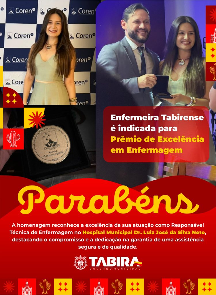 A Prefeitura de Tabira, por meio da Secretaria Municipal de Saúde, parabeniza a enfermeira Daniella Corina pela conquista e reforça seu compromisso com a valorização dos profissionais de saúde que diariamente trabalham para oferecer um atendimento cada vez melhor à população.