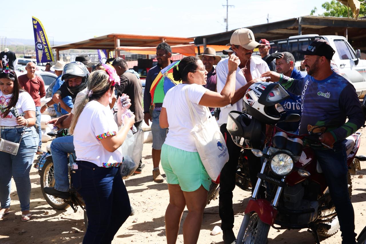 Além da estrutura fixa na praça, as equipes também circularam pela feira livre e pela feira do gado, realizada no curral do gado, reconhecida como a maior feira de gado do Nordeste, onde também houve distribuição de preservativos e orientações sobre prevenção.