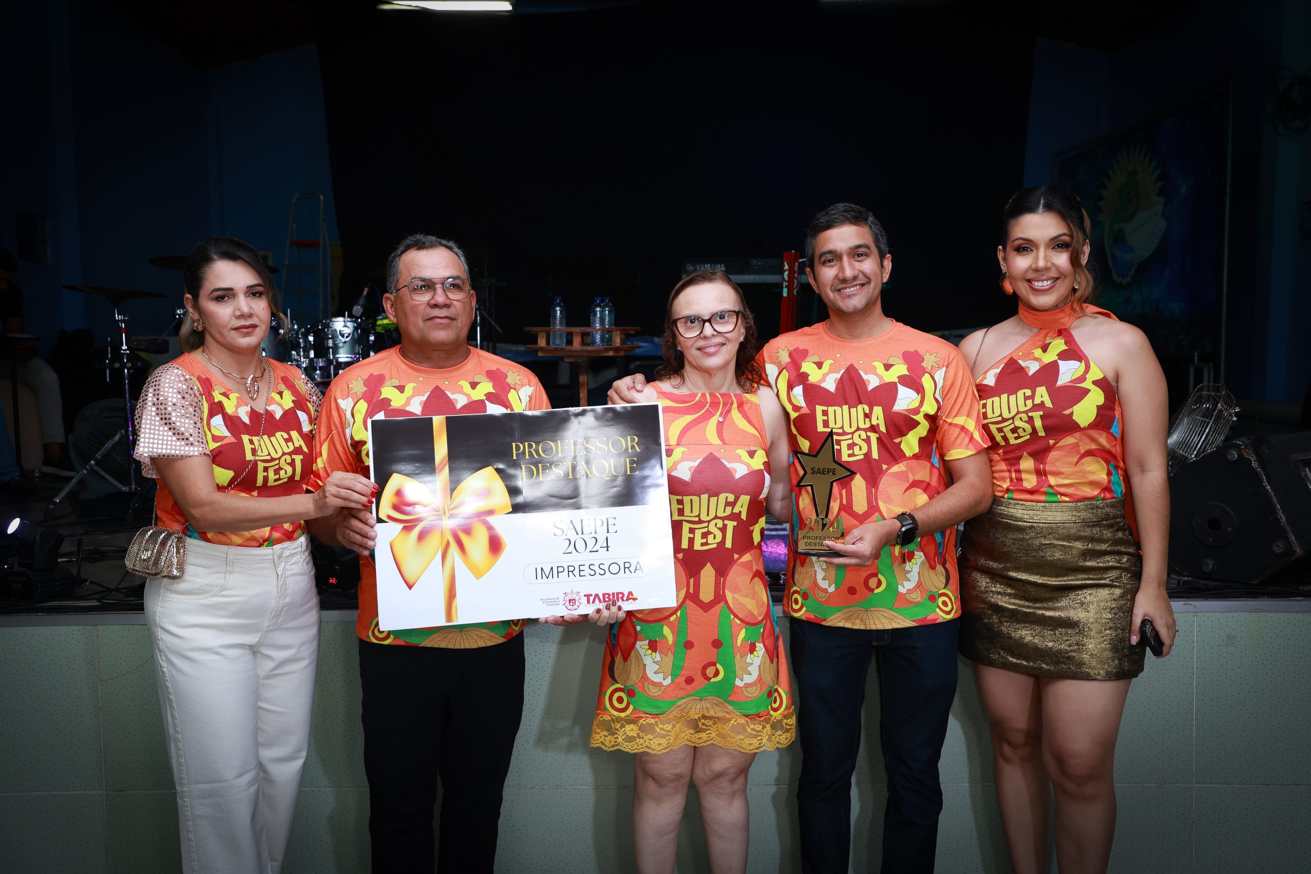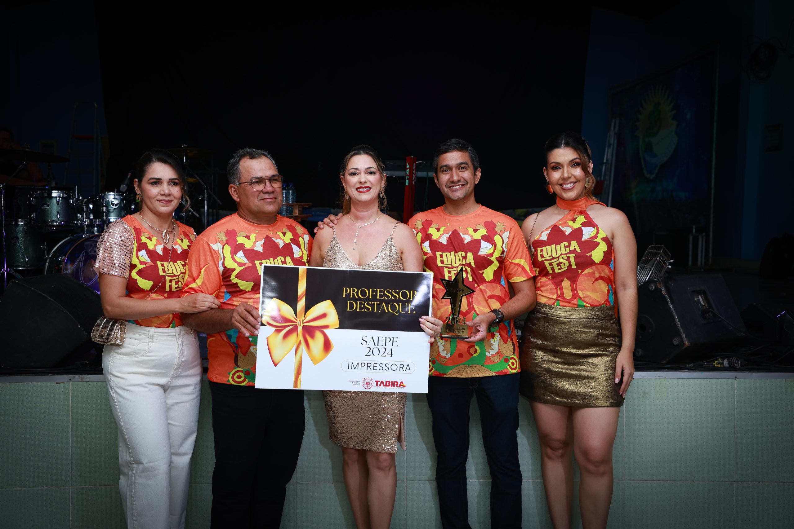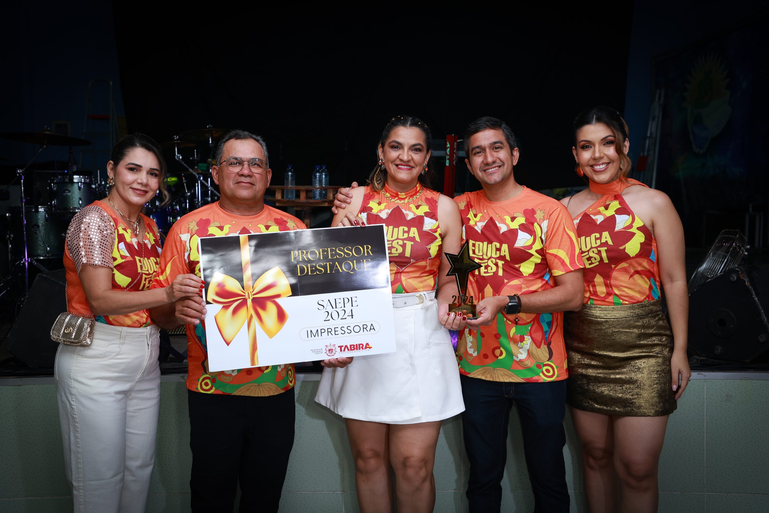 Durante o evento, os professores que se destacaram nos resultados do SAEPE 2024 foram homenageados e premiados com impressoras novas, como forma de valorizar o empenho e a excelência na prática pedagógica.