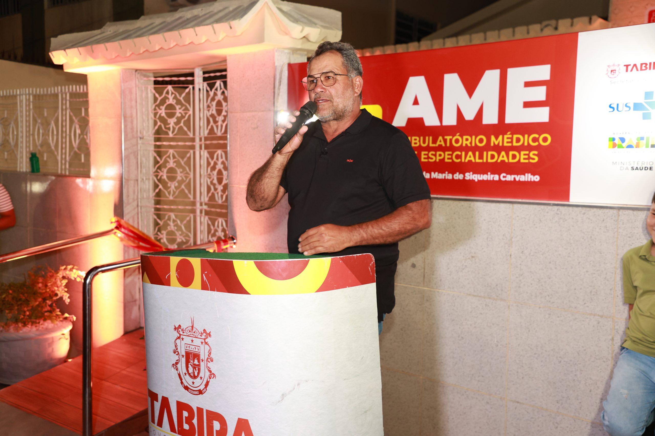 Na noite desta sexta-feira, o prefeito de Tabira, Flávio Marques, ao lado do vice-prefeito Marcos Crente e da secretária de Saúde, Maria José Almeida, inaugurou o Ambulatório Médico de Especialidades (AME). A solenidade contou com a presença da presidente da Câmara, vereadora Socorro Veras, dos vereadores Adelmo das Antenas, Dicinha do Calçamento, Didi de Heleno, Bebé de Aldo Santana e do líder do governo, Kleber Paulino, além de secretários municipais, diretores, coordenadores, médicos especialistas e servidores da saúde.