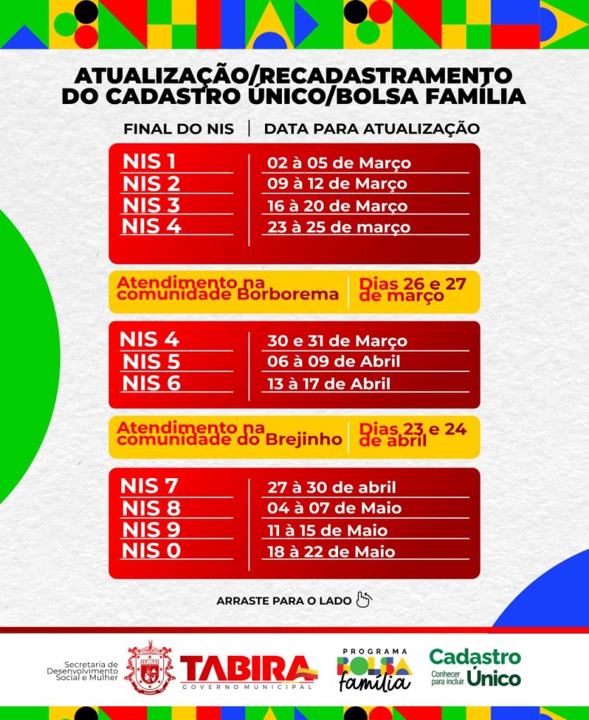 A Prefeitura de Tabira, por meio da Secretaria de Desenvolvimento Social e Mulher, inicia o cronograma de atualização e recadastramento do Cadastro Único, reforçando o compromisso com a garantia de direitos e o fortalecimento das políticas públicas no município.
